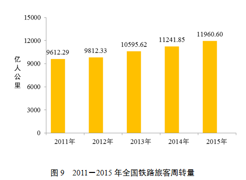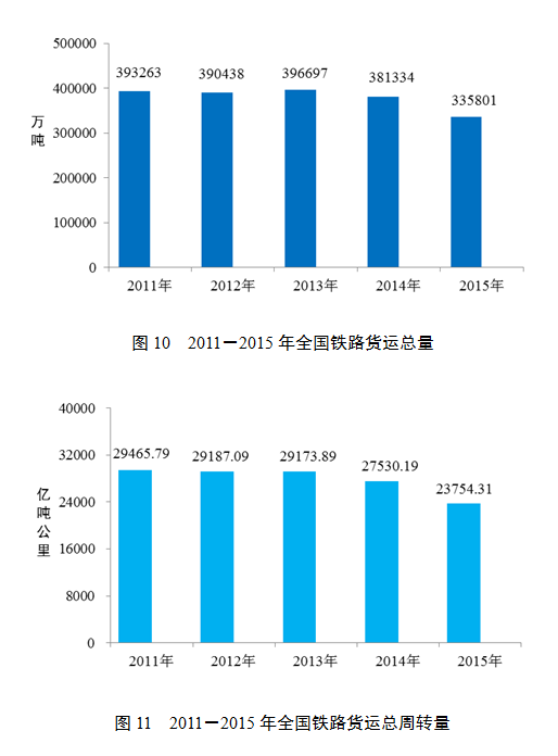 2015年,全社会完成客运量194.32亿人、旅客周转量30047.01亿人公里,货运量410.00亿吨、货物周转量173689.76亿吨公里,比上年分别下降4.4%、增长4.9%,增长0.2%和下降2.1%。