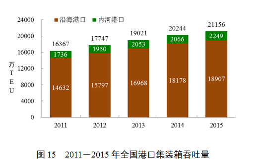 全国港口完成集装箱吞吐量2.12亿TEU,比上年增长4.5%。其中,沿海港口完成1.89亿TEU,内河港口完成2249万TEU,比上年分别增长4.0%和8.9%。