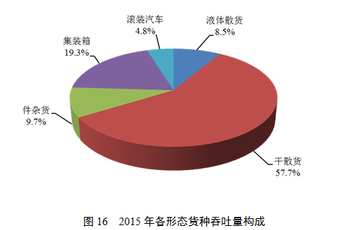 全国港口完成液体散货吞吐量10.81亿吨,比上年增长8.5%;干散货吞吐量73.61亿吨,增长1.6%;件杂货吞吐量12.42亿吨,减少0.8%;集装箱吞吐量(按重量计算)24.55亿吨,增长4.5%;滚装汽车吞吐量(按重量计算)6.11亿吨,增长0.3%。