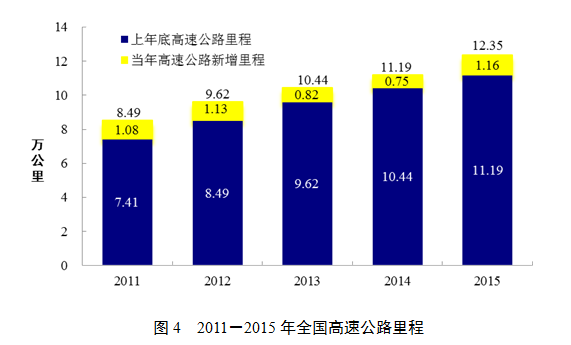 4.国家干线公路交通量计算单位“辆”,是各类型车辆按照一定的换算系数折算成的标准当量数。各类公路日平均行驶量由各断面日交通量与对应路网观测里程的乘积汇总得出。2015年全国国道观测里程为126059公里,其中,国家高速公路42581公里,普通国道83478公里。全国高速公路观测里程为56312公里。
