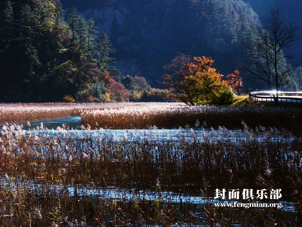 “黄山归来不看山,九寨归来不看水”。九寨沟的精灵是水,湖、泉、瀑、溪、河、滩,连缀一体,飞动与静谧结合,刚烈与温柔相济,千颜万色,多姿多彩。高低错落的群瀑高唱低吟;大大小小的群海碧蓝澄澈,水中倒映红叶、绿树、雪峰、蓝天,一步一色,变幻无穷;水在树间流,树在水中长,花树开在水中央。