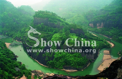 武夷山位于中国东南部福建省西北的武夷山市,总面积达99975公顷。武夷山的自然风光独树一帜,尤其以“丹霞地貌”著称于世。九曲溪沿岸的奇峰和峭壁,映衬着清澈的河水,构成一幅奇妙秀美的杰出景观。