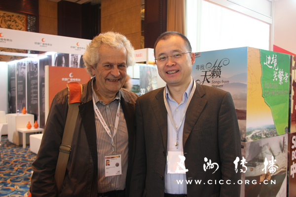 五洲传播中心副主任井水清与法国阳光纪录片大会主席伊夫合影