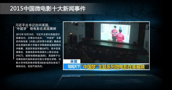 此次微电影节是以“公益、艺术、繁荣、发展”为主题,以微电影展映,交流为主要内容的国际性电影展。系列微电影《中国人的梦想与希望》,承载五洲传播中心一直以来的主旨,传递中国的声音,让世界更了解中国,让更多的外国观众感受到当下中国各行各业的普通人,对于“中国梦”朴实而不同的理解和不懈的追求。系列微电影在2015年10月习总书记访英期间的成功展映,受到了英国各著名高校学生的欢迎,和业内人士的肯定。这个系列作品的成功也应证了五洲传播中心制片团队最初的主题策划和理念。