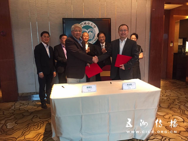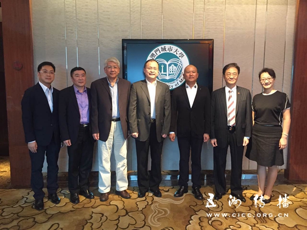 2016年9月2日,五洲传播中心副主任井水清等一行在珠海与澳门城市大学张曙光校长、教务长李树英、校董会秘书长陈俊拔等会面,双方就“一带一路”倡议下在多领域开展合作的可行性进行了磋商。会面后,双方机构负责人在澳门城市大学校董会主席陈明金、副主席吴在权的见证下,签署了合作谅解备忘录。