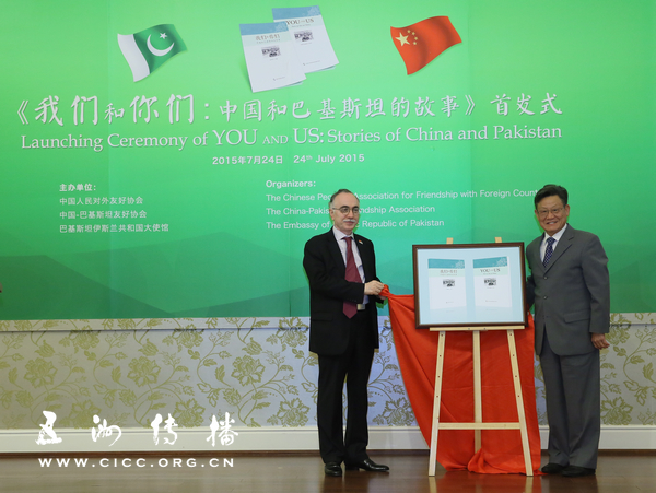 由五洲传播出版社、外交笔会联合编辑出版的《我们和你们:中国和巴基斯坦的故事》中、英文版7月24日正式发行。中国巴基斯坦友好协会会长、前联合国副秘书长沙祖康和巴基斯坦驻华大使马苏德·哈立德为新书揭幕。原国务院外办主任刘述卿、外交部原副部长徐敦信、外交笔会会长蔡方柏、前国务院副总理兼外交部长黄华夫人何理良等近百人出席了在全国友协和平宫举行的新书发布仪式。