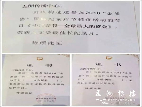 本届纪录片节上,五洲传播中心与国家地理频道、BBC等机构合作拍摄的电视片《鸟瞰中国》、《中国春节——全球最大的盛会》、《太空记者》、《新疆,我们的故事》均荣膺“金熊猫”国际纪录片奖。作为一家立足中国、面向世界的影视传播机构,五洲传播中心拥有22年的纪录片制作历史,有13年的国际联合制作历史,在中国主题纪录片国际传播方面积累了丰富的经验。