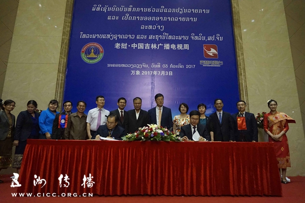 启动仪式上,老挝国家电视台与中国吉林电视台签署合作协议,双方将在人员互访、节目互换、版权输出、学术研讨、人才培养等方面开展多种形式的交流与合作。