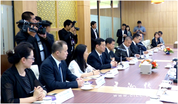 泰国新闻及媒体主管部门、总理府民联厅厅长讪森.皎甘能陆军少将(下图第一排左一)和泰国国家电视台台长披彩雅.蒙瑙一行与中方工作组会面洽谈,双方就《丝路时间》栏目建设以及中泰媒体交流合作相关事宜进行了深入探讨。