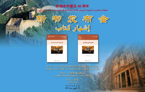 当地时间2017年10月23日晚上,作为庆祝中约建交四十周年系列活动之一,由中国驻约旦使馆主办、五洲传播出版社协办的《我们和你们:中国和约旦的故事》新书发布会在安曼君悦酒店隆重举行。约旦卫生大臣谢亚布、投资事务国务大臣夏哈代、外交与侨务部秘书长劳齐(外交与侨务大臣萨法迪代表)、计划与国际合作部代理秘书长欧比达特,中国驻约旦大使潘伟芳,本书主编、前驻约旦大使刘宝莱,约旦参议员兼TAG集团主席塔拉勒•艾布-贾扎莱、约中友协主席达穆尔,部分前政要,来自宫廷、政府、议会、军警、工商、文化、科教、新闻等各界官员和友人,以及在约华侨华人、中资机构、教师、留学生代表等共约300人出席。
