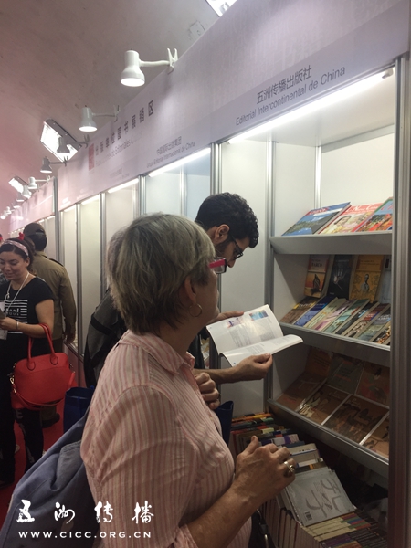 五洲传播出版社是中国出版西班牙文图书最多的出版社,近几年来出版了120多种西文图书。此次书展,五洲传播出版社精心挑选了200余种西文和英文精品图书参展,涉及中国文化、历史、文学、少儿读物等多个领域,重点包括,一直以来广受国外读者喜爱的“人文中国”系列、“中国文化”系列、“中国基本情况”系列以及“中国当代文学精选”系列(西文版)。这些都是了解中国及中国文化的基础读物。五洲传播出版社展位始终人头攒动,成为书展中最受古巴读者欢迎的展位之一。