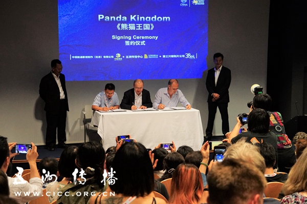 25日晚间,“中国之夜”签约赏映会现场高朋满座。阳光纪录片节主席伊夫•让诺对五洲传播中心等中国媒体和机构积极参展表示感谢,他在致辞中提到,中国代表团带来了多部优秀作品,“中国联合展台”是本届阳光纪录片节上最靓丽的展台。随后,他与中宣部对外推广局巡视员、副局长凌厉、国家广播电视总局宣传司司长高长力共同见证了由五洲传播中心、中视航通联合出品的《熊猫王国》与法国第三只眼集团签署战略合作协议,央视纪录频道与法国制作发行机构ZED就《野性四季》合拍片签约。14部优秀中国作品获得了阳光纪录片节颁发的“优秀参展作品”入围证书;伊夫•让诺先生还特别为五洲传播中心颁发了金牌合作伙伴荣誉证书,并对五洲传播中心10年间携手“阳光节”、推动中外影视交流所做出的成绩表示感谢和祝贺。法国文化部文化艺术中心、法国电视联盟、法国国家电视台、法国AB Groupe集团、葡萄牙国家广播电视集团、美国探索频道欧洲、美国国家地理野生频道等来自全球88个机构的250位代表见证了此次活动。
