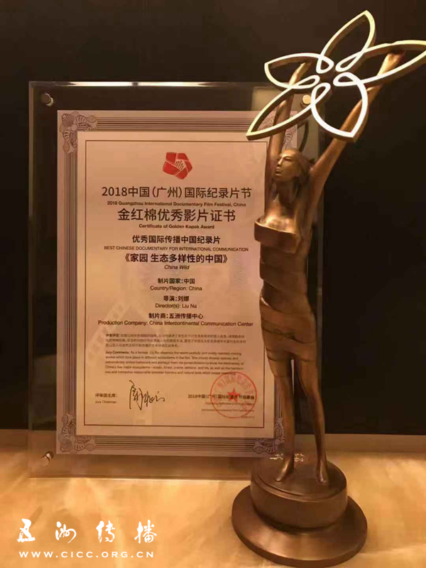 12月13日晚,2018中国(广州)国际纪录片节闭幕式暨“金红棉”优秀纪录片分享会在广州举行。由国务院新闻办公室监制,五洲传播中心制作的大型自然类系列纪录片《家园 生态多样性的中国》荣获“金红棉”推优单元“优秀国际传播中国纪录片奖”。