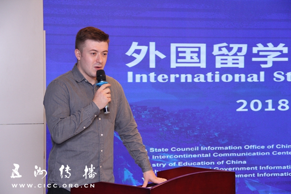 来自法国的北京航空航天大学研究生张浩成同学在启动仪式上发言。(栾海军摄)