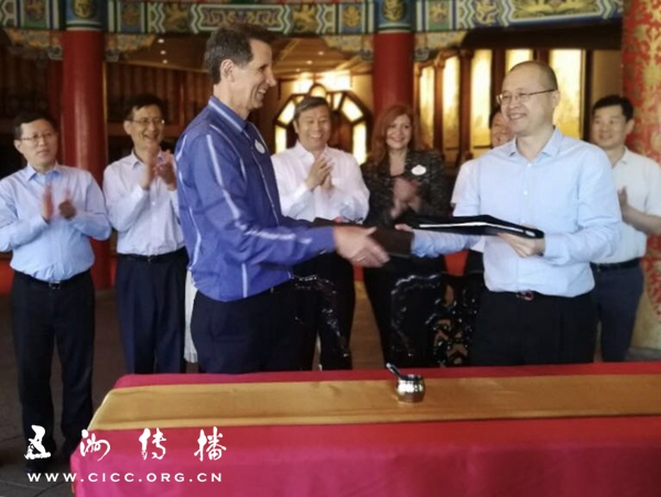 美国东部时间7月2日上午,在美国奥兰多迪士尼世界中国园,在中宣部孙志军副部长的见证下,五洲传播中心与美国迪士尼公司就环幕电影《中国映像》合作事宜签署合作协议, 中宣部(国新办)和迪士尼有关代表出席了签约仪式。