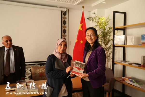 发布会的最后,中国驻摩洛哥大使馆政务参赞朱克玮女士、摩中友协主席哈利勒博士分别向哈桑二世大学孔子学院中外方院长及图书馆馆长杜凯莉女士赠送新书。