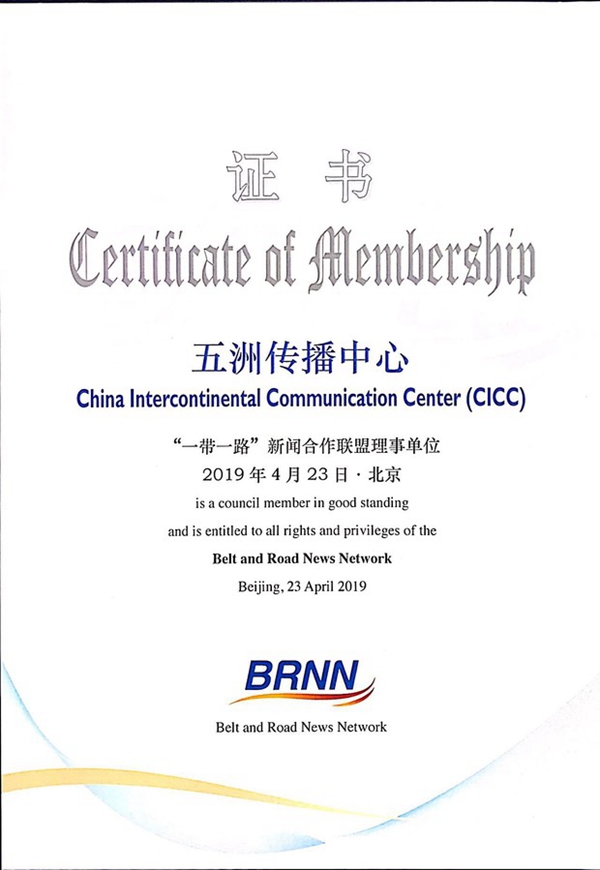 “一带一路”新闻合作联盟理事单位证书