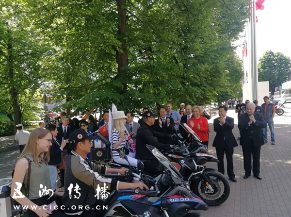 王晓晖在致辞中表示,在中俄建交70周年之际,两国摩托车手开展联合骑行活动,是一次见证中俄两国人民深厚友谊的“友谊之旅”。两国车手一路传递爱心、播撒友谊,吸引了沿途多家摩托车俱乐部共同参与和助威,是人民外交的成功实践。车手们表现出来的非凡勇气和协作精神,正是中俄两国人民长期以来不屈奋斗、守望相助的生动写照。