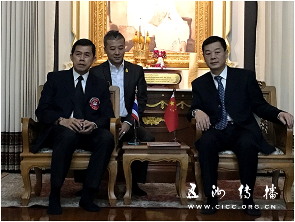 功·塔帕朗西会长(上图左一)在致辞中表示,中国发起的“一带一路”倡议为沿线国家和地区的发展带来了积极的影响,也将为“泰中一家亲”的悠久传统注入新的活力,书写新的篇章。泰中友好协会今后将大力推动泰中媒体交流合作,深化两国传统友谊。凌厉副局长对泰中友好协会长期以来在推动中泰友好交往方面所做的贡献表示感谢,认为“一带一路”倡议为中国与泰国及东盟国家加强交流合作提供了崭新的机遇,希望泰中友好协会以此次与五洲传播中心的合作为契机,积极推动中泰媒体机构开展广泛深入的合作,不断增进中泰两国人民的相互了解与友好。井水清副主任表示,五洲传播中心与泰中友好协会将在“一带一路”倡议下,携手构建更加全面深入的中泰媒体合作关系,共同开启中泰以及中国与东盟各国间媒体合作的新篇章,促进“一带一路”沿线国家和地区民心相通。