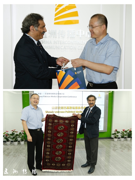 五洲传播中心与巴基斯坦媒体代表团互赠礼物