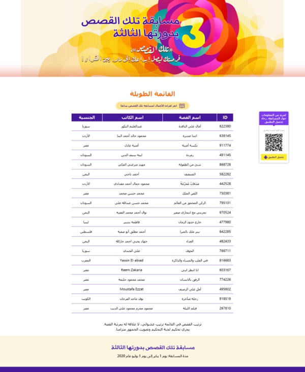 2020年的创作大赛共收到来自沙特、埃及、摩洛哥、阿尔及利亚、科威特等21个阿拉伯国家的2014篇投稿,通过7名文学专家组成的专家评审组和13万网友网络投票进行评选,最终有50篇参赛作品入围,20篇进入长名单,10篇进入短名单。每年7月1日公布创作大赛短名单的同时,五洲传播出版社将与中国外国文学学会阿拉伯文学研究分会联合启动that’s books阿拉伯网络小说翻译大赛(以下简称:翻译大赛)。翻译大赛将以创作大赛短名单作品为翻译对象,面向中国的阿拉伯语学习者。that’s books阿拉伯网络小说创作大赛和阿拉伯网络小说翻译大赛为中阿青年之间提供了互相了解和文化交流的平台。